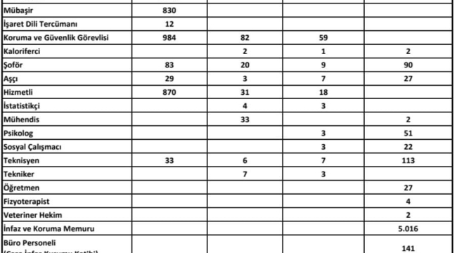 İşte alınacak personelin birimlere dağılımını ve sayılarını gösteren tablo: