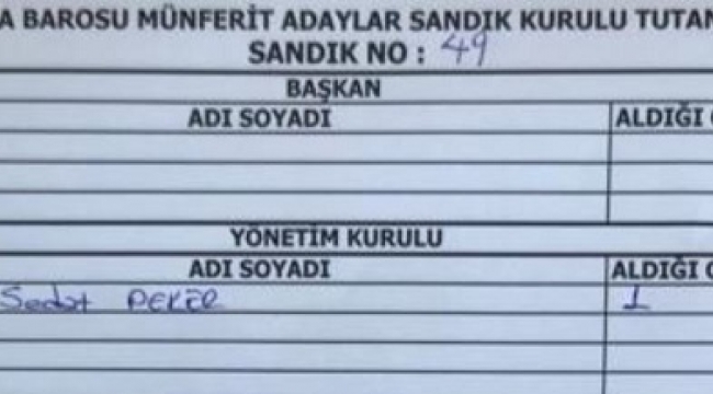 Daha önce de, Muğla Barosu seçimlerine damga vuran Sedat Peker'e 7 oy çıkmış, Peker konuya ilişkin açıklamasında, "7 tane atom bombası atsaydınız bu kadar etkili olmazdı" ifadelerini kullanmıştı.