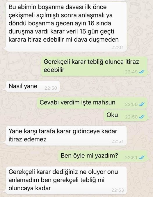 Avukat ile müvekkil arasındaki ilginç yazışma Dinle Editor: Yargınınnabzi.com 17 Temmuz 2021 - 22:20 - Güncelleme: 17 Temmuz 2021 - 22:33 Paylaş Tweetle WhatsApp FACEBOOK YORUMLAR YORUMLAR 0 Yorum adlı kullanıcıya cevap avukat müvekkil arasındaki ilginç yazışma Gurur ve mutlulukları gözlerinden okunuyordu... Yıllarını 'Adalete' adayan avukatlara plaket! PAZARTESİ AÇILIYOR:'İZMİRLİ AVUKATLARDAN FOTOĞRAF SERGİSİ' Şehit Yakını Necat Tören, Sağlık Çalışanlarının Sesi Olacak:'Şehit Gazi Sağlık Birlik-Sen'de Yeni Dönem' Küçük bedenin yaşaması için bağış gecesi.. İzmir 'Bala İkra' için kenetleniyor! Avukat Kürşat Bıyık: "Bu bir dijital suikasttır Ahlaksız teklifi reddeden kadına siber infaz! Avukat Ergün Vardar Yazdı:'Hakaret ve Tehdit Ediliyorsanız Kayıt Almak Suç Değil! İzmir Adalet Komisyon Başkanlığı'na Onur Sert atandı İZMİR ADLİYESİ'NDE 'KOORDİNASYON KURUL TOPLANTISI' YAPILDI Avukat Ergün Vardar Yazdı:'Bir Paylaşımla Şüpheli, Sonra Sanık ve Neticeten Suçlu Olmayın' İzmir Adliyesi’nde '8 Mart Dünya Kadınlar Günü' Kutlaması İzmir Cumhuriyet Başsavcılığı tarafından her yıl düzenlenen geleneksel iftar programı bu yılda gerçekleşti Birlik Sağlık Sen’den İzmir’de ‘tabut bina’ tepkisi: Ölmek istemiyoruz! İZMİR BAŞSAVCISI YELDAN YEŞİLAY DANIŞMANLIK MERKEZİNİ ZİYARET ETTİ Medikal Estetikte NZ Farkı! Konak Belediyesi’nden Alsancak’ta üst yapı hamlesi:'Başkan Mutlu çalışmaları yerinde inceledi' 1 2 3 4 5 6 7 8 9 10 11 12 13 14 15 Avukat Kürşat Bıyık: "Bu bir dijital suikasttır Ahlaksız teklifi reddeden kadına siber infaz! Avukat Ergün Vardar Yazdı:'Hakaret ve Tehdit Ediliyorsanız Kayıt Almak Suç Değil! İzmir Adalet Komisyon Başkanlığı'na Onur Sert atandı İZMİR ADLİYESİ'NDE 'KOORDİNASYON KURUL TOPLANTISI' YAPILDI Alkol var darp yok:'İstanbul'da düşerek ölen İzmirli Şebnem hemşire ilgili raporu çıktı' Suç işleyenlerin Organize Suç Örgütü kapsamında değerlendirilmesi nasıl gerçekleşir?
