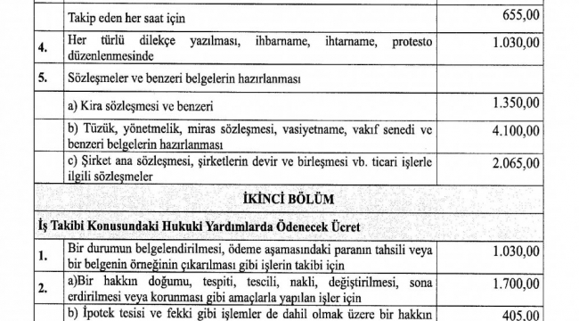 AVUKATA BİR SAAT SÖZLÜ DANIŞMA 675 TL:'AVUKATLIK ASGARİ ÜCRET TARİFESİ AÇIKLANDI'ASGARİ