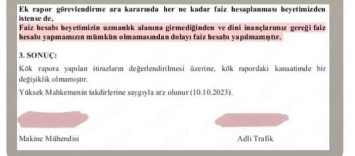 BİLİRKİŞİLERDEN ŞOK SATIRLAR:'DİNİ İNANÇLARIMIZ GEREĞİ FAİZ HESABI YAPMAMIZIN MÜMKÜN OLMADIĞI'