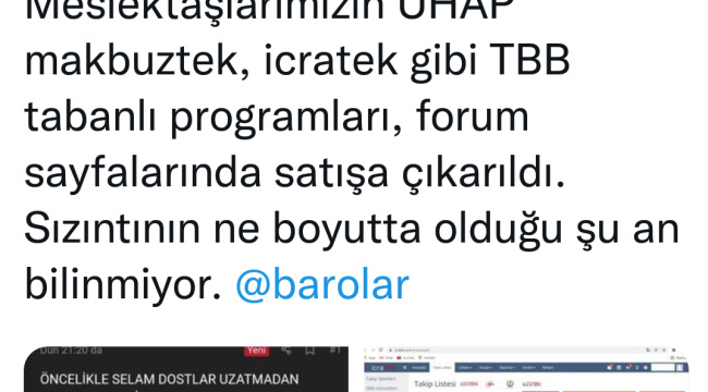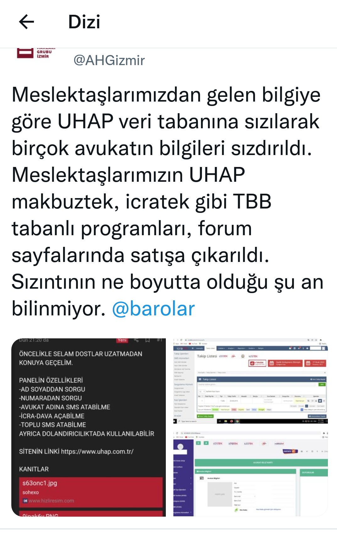 BOYUTU BELLİ DEĞİL:'AVUKATLARIN VERİ TABANINA SIZINTI' Dinle Editor: Yargınınnabzi.com 19 Ocak 2022 - 16:15 Paylaş Tweetle WhatsApp FACEBOOK YORUMLAR YORUMLAR 0 Yorum adlı kullanıcıya cevap avukatların veri tabanına sızıntı Gurur ve mutlulukları gözlerinden okunuyordu... Yıllarını 'Adalete' adayan avukatlara plaket! PAZARTESİ AÇILIYOR:'İZMİRLİ AVUKATLARDAN FOTOĞRAF SERGİSİ' Şehit Yakını Necat Tören, Sağlık Çalışanlarının Sesi Olacak:'Şehit Gazi Sağlık Birlik-Sen'de Yeni Dönem' Küçük bedenin yaşaması için bağış gecesi.. İzmir 'Bala İkra' için kenetleniyor! Avukat Kürşat Bıyık: "Bu bir dijital suikasttır Ahlaksız teklifi reddeden kadına siber infaz! Avukat Ergün Vardar Yazdı:'Hakaret ve Tehdit Ediliyorsanız Kayıt Almak Suç Değil! İzmir Adalet Komisyon Başkanlığı'na Onur Sert atandı İZMİR ADLİYESİ'NDE 'KOORDİNASYON KURUL TOPLANTISI' YAPILDI Avukat Ergün Vardar Yazdı:'Bir Paylaşımla Şüpheli, Sonra Sanık ve Neticeten Suçlu Olmayın' İzmir Adliyesi’nde '8 Mart Dünya Kadınlar Günü' Kutlaması İzmir Cumhuriyet Başsavcılığı tarafından her yıl düzenlenen geleneksel iftar programı bu yılda gerçekleşti Birlik Sağlık Sen’den İzmir’de ‘tabut bina’ tepkisi: Ölmek istemiyoruz! İZMİR BAŞSAVCISI YELDAN YEŞİLAY DANIŞMANLIK MERKEZİNİ ZİYARET ETTİ Medikal Estetikte NZ Farkı! Konak Belediyesi’nden Alsancak’ta üst yapı hamlesi:'Başkan Mutlu çalışmaları yerinde inceledi' 1 2 3 4 5 6 7 8 9 10 11 12 13 14 15 Avukat Kürşat Bıyık: "Bu bir dijital suikasttır Ahlaksız teklifi reddeden kadına siber infaz! Avukat Ergün Vardar Yazdı:'Hakaret ve Tehdit Ediliyorsanız Kayıt Almak Suç Değil! İzmir Adalet Komisyon Başkanlığı'na Onur Sert atandı İZMİR ADLİYESİ'NDE 'KOORDİNASYON KURUL TOPLANTISI' YAPILDI Avukat bahçesinde ölü bulundu İZMİR'DEKİ SAYI 11 BİN 650:'TÜRKİYE GENELİNDE AVUKAT SAYISI 160 BİNİ AŞTI'