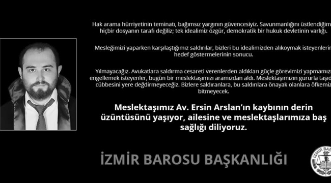 Yılmayacağız. Avukatlara saldırma cesareti verenlerden aldıkları güçle görevimizi yapmamızı engellemek isteyenler, bugün bir meslektaşımızı aramızdan aldı. Meslektaşımızın gururla taşıdığı cübbesini yere değdirmeyeceğiz. Bizlere saldıranlara, bu saldırılara önayak olanlara öfkemiz bitmeyecek.