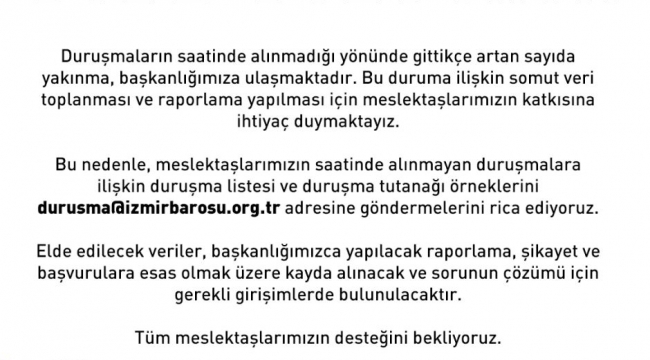 İZMİR BAROSU'NDAN ÜYELERİNE DUYURU Dinle Editor: Yargınınnabzi.com 04 Kasım 2021 - 22:14 - Güncelleme: 04 Kasım 2021 - 23:08 Paylaş Tweetle WhatsApp FACEBOOK YORUMLAR YORUMLAR 0 Yorum adlı kullanıcıya cevap izmir barosu Gurur ve mutlulukları gözlerinden okunuyordu... Yıllarını 'Adalete' adayan avukatlara plaket! PAZARTESİ AÇILIYOR:'İZMİRLİ AVUKATLARDAN FOTOĞRAF SERGİSİ' Şehit Yakını Necat Tören, Sağlık Çalışanlarının Sesi Olacak:'Şehit Gazi Sağlık Birlik-Sen'de Yeni Dönem' Küçük bedenin yaşaması için bağış gecesi.. İzmir 'Bala İkra' için kenetleniyor! Avukat Kürşat Bıyık: "Bu bir dijital suikasttır Ahlaksız teklifi reddeden kadına siber infaz! Avukat Ergün Vardar Yazdı:'Hakaret ve Tehdit Ediliyorsanız Kayıt Almak Suç Değil! İzmir Adalet Komisyon Başkanlığı'na Onur Sert atandı İZMİR ADLİYESİ'NDE 'KOORDİNASYON KURUL TOPLANTISI' YAPILDI Avukat Ergün Vardar Yazdı:'Bir Paylaşımla Şüpheli, Sonra Sanık ve Neticeten Suçlu Olmayın' İzmir Adliyesi’nde '8 Mart Dünya Kadınlar Günü' Kutlaması İzmir Cumhuriyet Başsavcılığı tarafından her yıl düzenlenen geleneksel iftar programı bu yılda gerçekleşti Birlik Sağlık Sen’den İzmir’de ‘tabut bina’ tepkisi: Ölmek istemiyoruz! İZMİR BAŞSAVCISI YELDAN YEŞİLAY DANIŞMANLIK MERKEZİNİ ZİYARET ETTİ Medikal Estetikte NZ Farkı! Konak Belediyesi’nden Alsancak’ta üst yapı hamlesi:'Başkan Mutlu çalışmaları yerinde inceledi' 1 2 3 4 5 6 7 8 9 10 11 12 13 14 15 Avukat Kürşat Bıyık: "Bu bir dijital suikasttır Ahlaksız teklifi reddeden kadına siber infaz! Avukat Ergün Vardar Yazdı:'Hakaret ve Tehdit Ediliyorsanız Kayıt Almak Suç Değil! İzmir Adalet Komisyon Başkanlığı'na Onur Sert atandı İZMİR ADLİYESİ'NDE 'KOORDİNASYON KURUL TOPLANTISI' YAPILDI Bazı adliye çalışanlarına keşif için yol tazminatı geliyor İzmir Barosu 'Hayvan Hakları Mücadelesine Devam'
