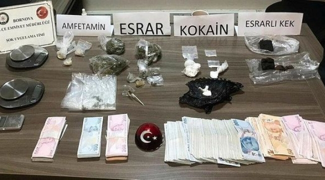 Savcılık kararı sonrası araç içerisinde arama yapan polis, 103,70 gram esrar, 56,3 gram kokain, 34,55 gram metamfetamin, 90 gram likit esrar, 159 gram esrarlı kek, 3 adet hassas terazi, 1 adet kırık telefon ve 64 bin 310 TL nakit para ele geçirdi. Olayla ilgili 3 şüpheli gözaltına alındı.