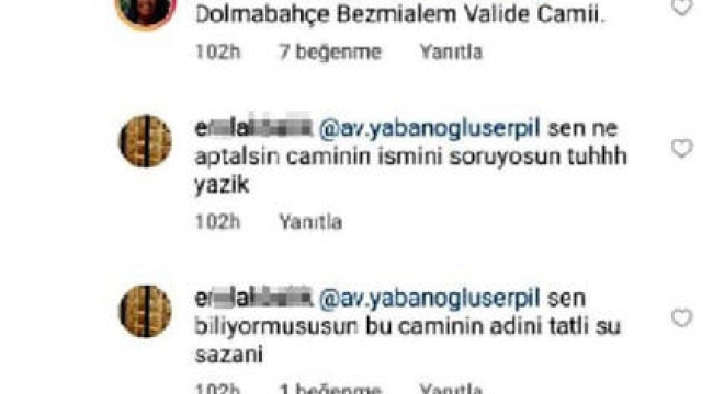 Kahramanmaraş Barosu avukatlarından Serpil Yabanoğlu, 6 Nisan 2020'de iş kadını Şebnem Çapa'nın paylaştığı fotoğraftaki caminin ismini sordu. Çapa, Yabanoğlu'nun sorusuna, 'Dolmabahçe Bezmialem Valide Camii' cevabını verdi. Aynı fotoğrafın altına mimar Erol A. ise 'Sen ne aptalsın, caminin ismini soruyorsun. Tüh yazık. Sen biliyor musun caminin adını tatlı su sazanı' yorumunu yaptı. Serpil Yabanoğlu şikayetçi olurken, Kahramanmaraş Cumhuriyet Başsavcılığı tarafından soruşturma başlatıldı.