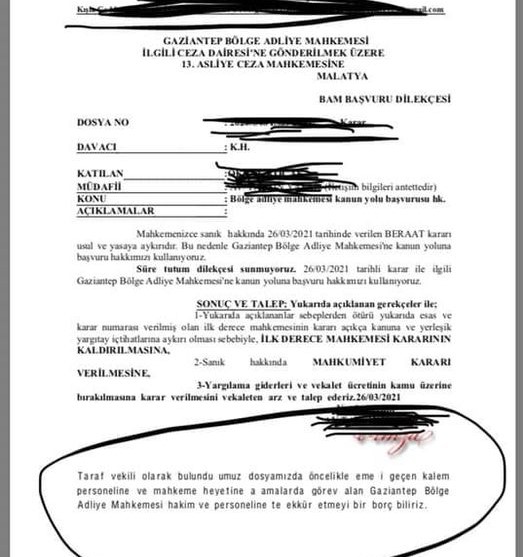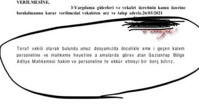Talep dilekçesinde TEŞEKKÜR satırları
